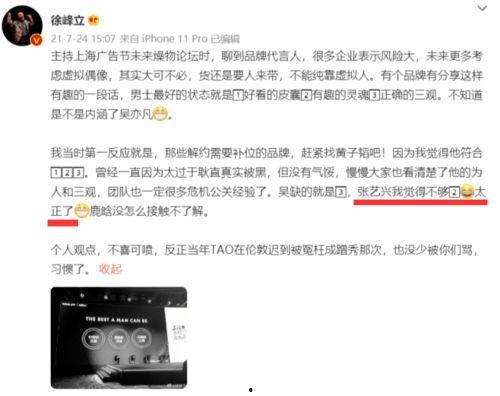 当然,也有一些明星对此事发表了看法。他们认为徐峰立的爆料视频揭示了娱乐圈的某些问题,应该引起大家的关注。